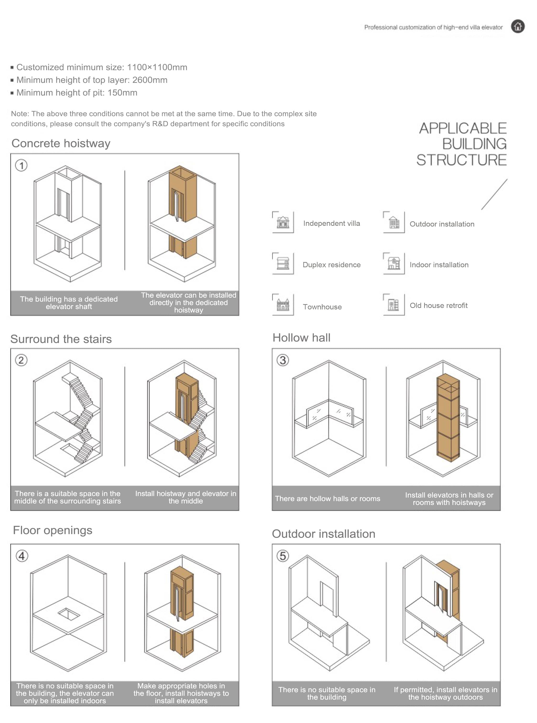 Consilia Europaea incorporantes et notas architecturae villarum domesticarum coniungentes, innovationem technologicam actuose promovemus, et ministerium dux sumimus ut productos elevatores summus qualitas efficiat.
